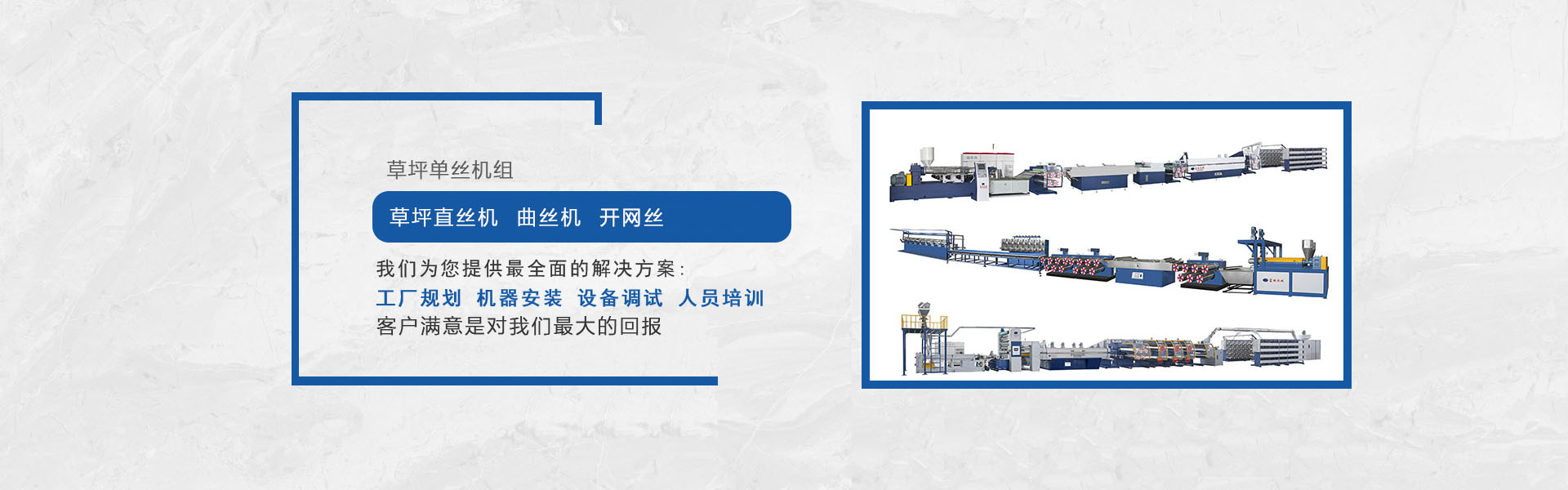 我司是專業生產塑料擠出圓絲、平膜扁絲機組等及其聚酯托幕線等配套附件、部件的專業化、正規化的企業,公司集行業專家的豐富知識,多年積累的經驗,結合國外同行先進技術,研發制造出系列圓絲擠出機組,在主要技術指標和性能上已處領先水平,我們正不斷優化管理,強化細節,使之能更好地為廣大用戶提供從技術、制造到工藝的全方位服務。